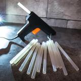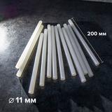 Термоклей прочно и быстро скрепит различные материалы: бумагу, дерево, картон, стекло, пластмассу, металл, кожу, синтетические волокна и т. д. Диаметр клеевого стержня 11 мм и длина 20 см являются самыми востребованными параметрами для выполнения работ. Цвет клеевого стержня белый. В комплект входит 12 клеевых стрежней, обеспечивающих непрерывный рабочий процесс.