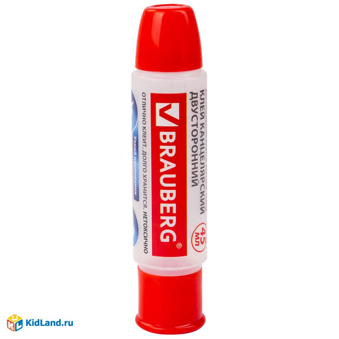 Клей канцелярский двусторонний BRAUBERG, 45 мл, с узким и широким аппликаторами, 227534