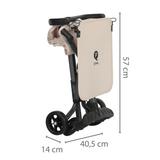 Коляска легко и быстро складывается и раскладывается – это занимает не более 30 секунд. И ещё она очень компактна: 57х40х15 см. - её можно легко носить с собой в сумке-рюкзаке (которая входит в комплект) или разместить в салоне или багажнике даже небольшого автомобиля, под сиденьями в поезде, взять в самолёт, а дома она тоже не займёт много места.