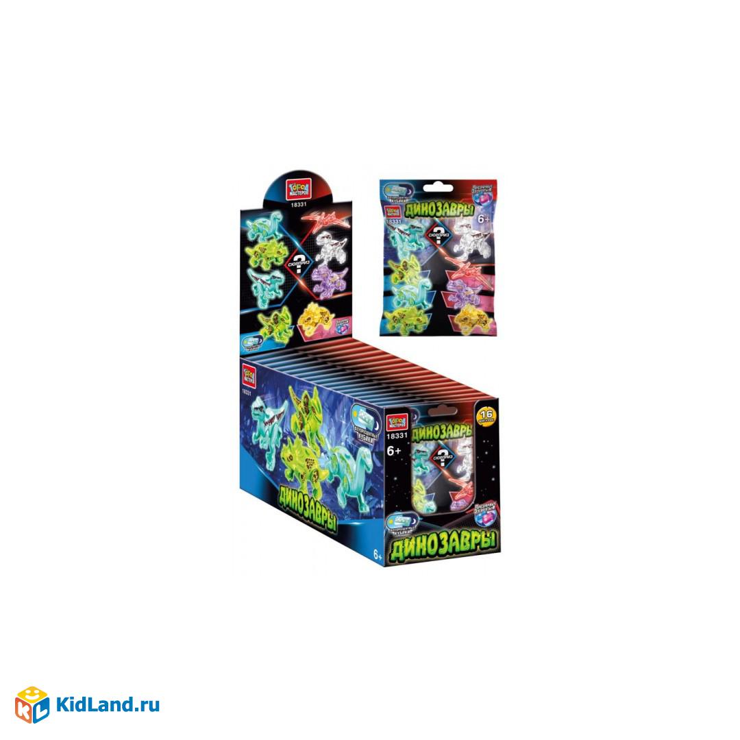 Конструктор фигурки ДИНОЗАВРЫ (прозрачные+светятся), в дисплее 16шт. Город мастеров