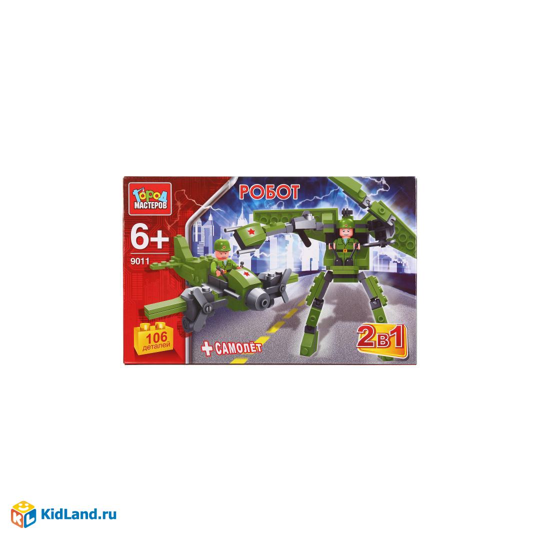 КОНСТРУКТОР "ГОРОД МАСТЕРОВ" 2-В-1 РОБОТ+САМОЛЕТ, С ФИГУРКОЙ В РУСС. КОР. в кор.2*18шт Конструктор "Город мастеров" 2-в-1 - "Роботы" обязательно понравится вашему мальчику. Из 106 деталей разного цвета, изготовленных из высококачественного пластика, можно собрать военный самолёт, трансформирующийся в робота, с которым ваш ребенок с радостью будет играть. Развивает усидчивость, мелкую моторику рук, фантазию. Рекомендовано детям от 6-ти лет. Совместим с моделями конструкторов мировых производителей.