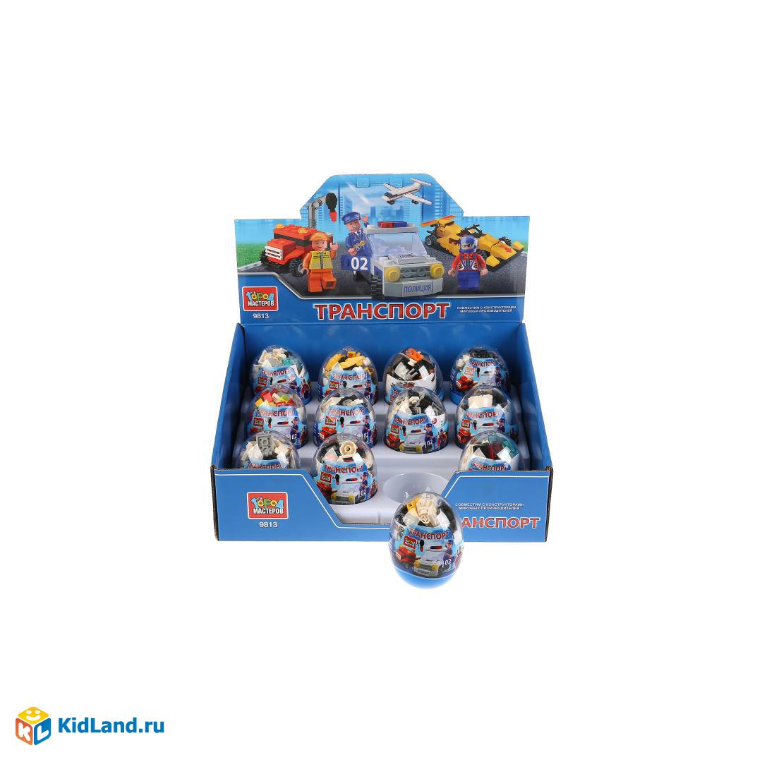 КОНСТРУКТОР "ГОРОД МАСТЕРОВ" "ТРАНСПОРТ" В АССОРТ. В ЯЙЦЕ В ДИСПЛЕЕ (РУСС. УП.) УП-12ШТ
