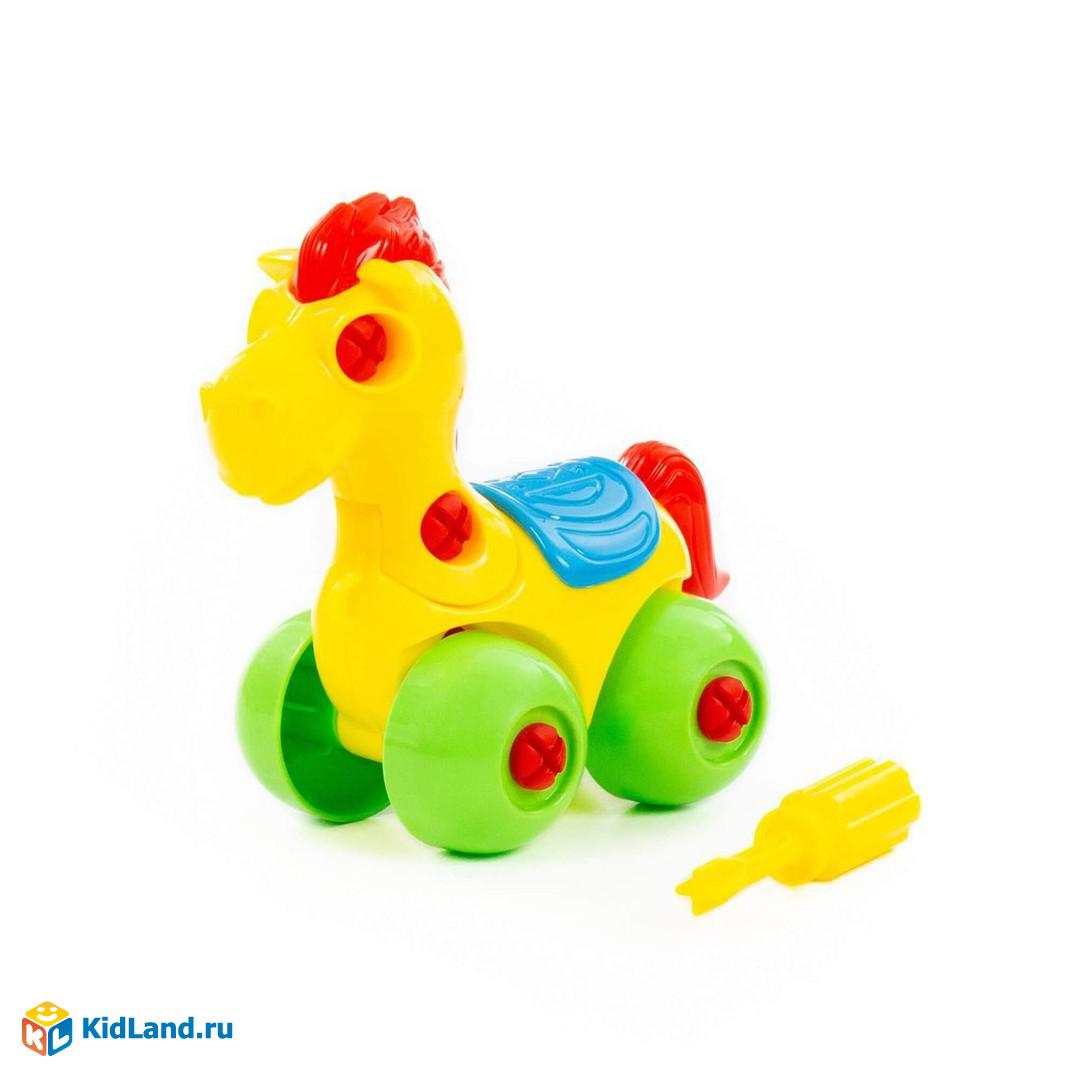 С помощью конструктора «Лошадка» ребёнок не просто знакомится с миром животных, а может многократно собирать и разбирать игрушку по элементам. Для этого в наборе предусмотрена специальная отвёртка. Игрушка на колёсах, поэтому ей можно играть как машинкой. Такой конструктор прекрасно подходит для воспитания малыша. С ним ребёнок изучает цвета и формы, у него развиваются усидчивость, логическое мышление, мелкая моторика рук и координация движений.