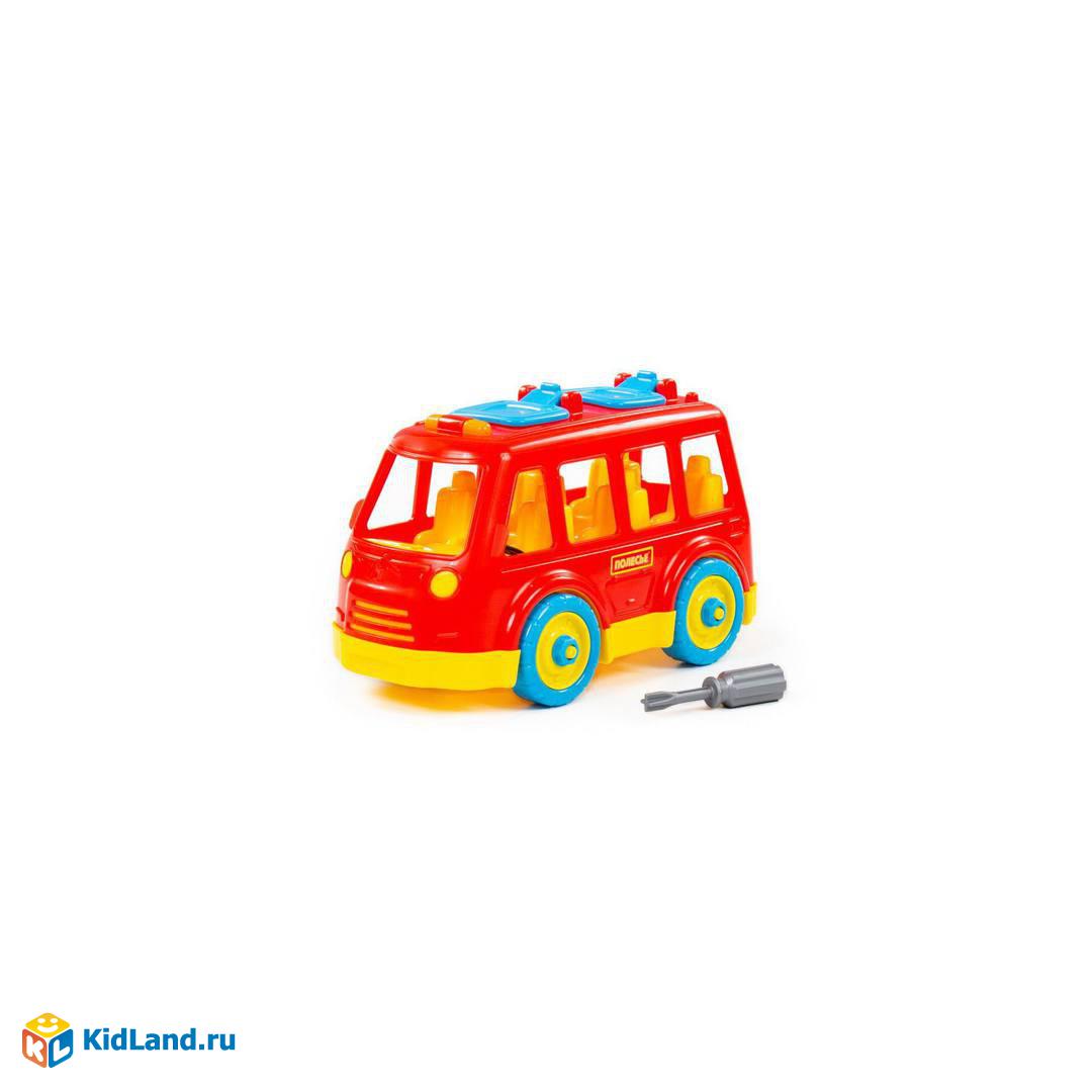 Конструктор ПОЛЕСЬЕ транспорт Автобус (в сеточке) красный