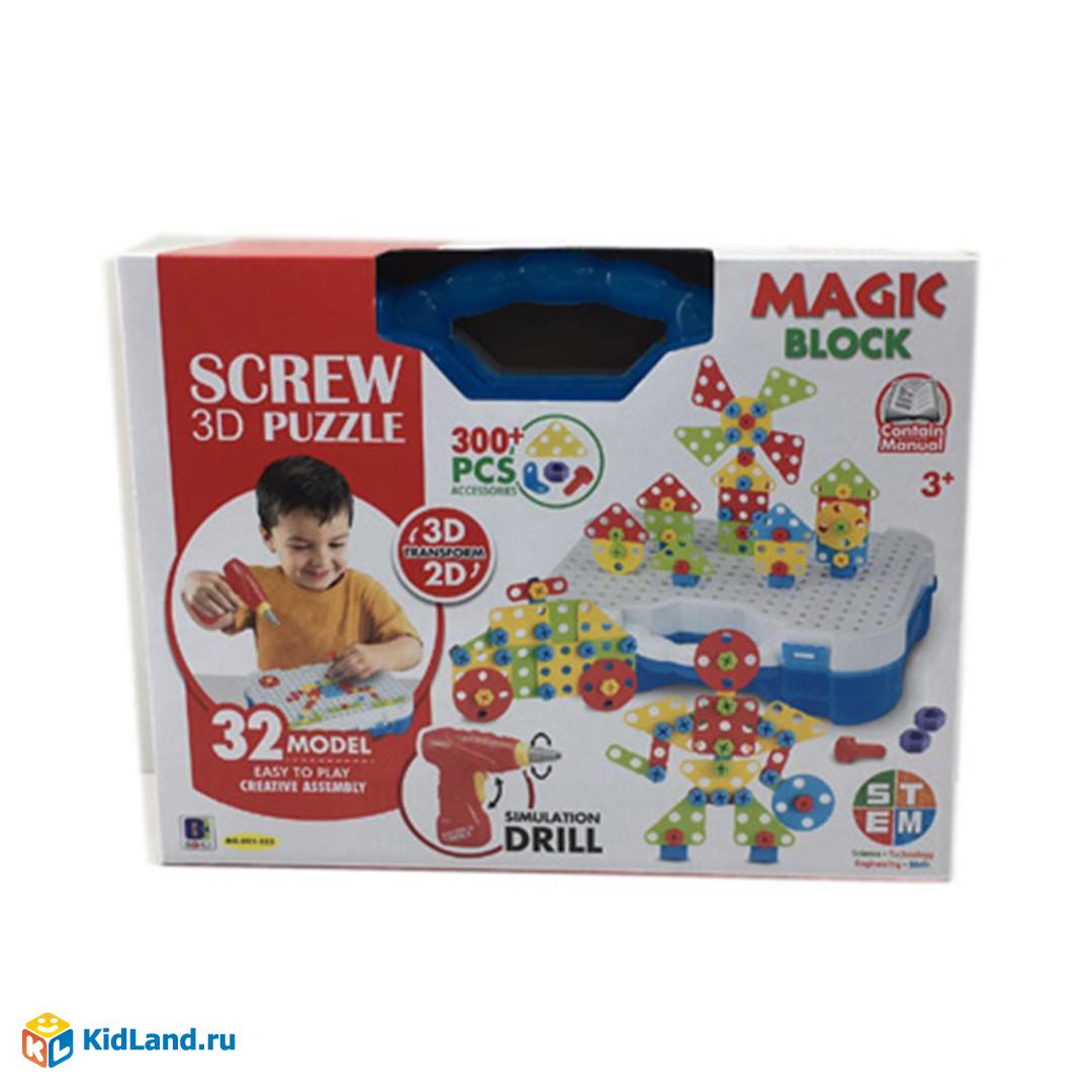 Этот игровой конструктор-скрутка включает 300 деталей нескольких разных видов. Из них можно собрать лодку, машинку, паровоз, мельницу и другие интересные модели!