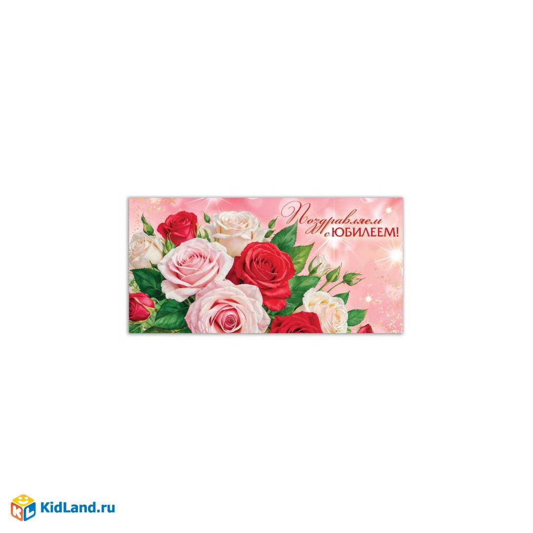 Конверт для денег цветы, поздравляем с юбилеем ЧУДО ПРАЗДНИК уп-10шт