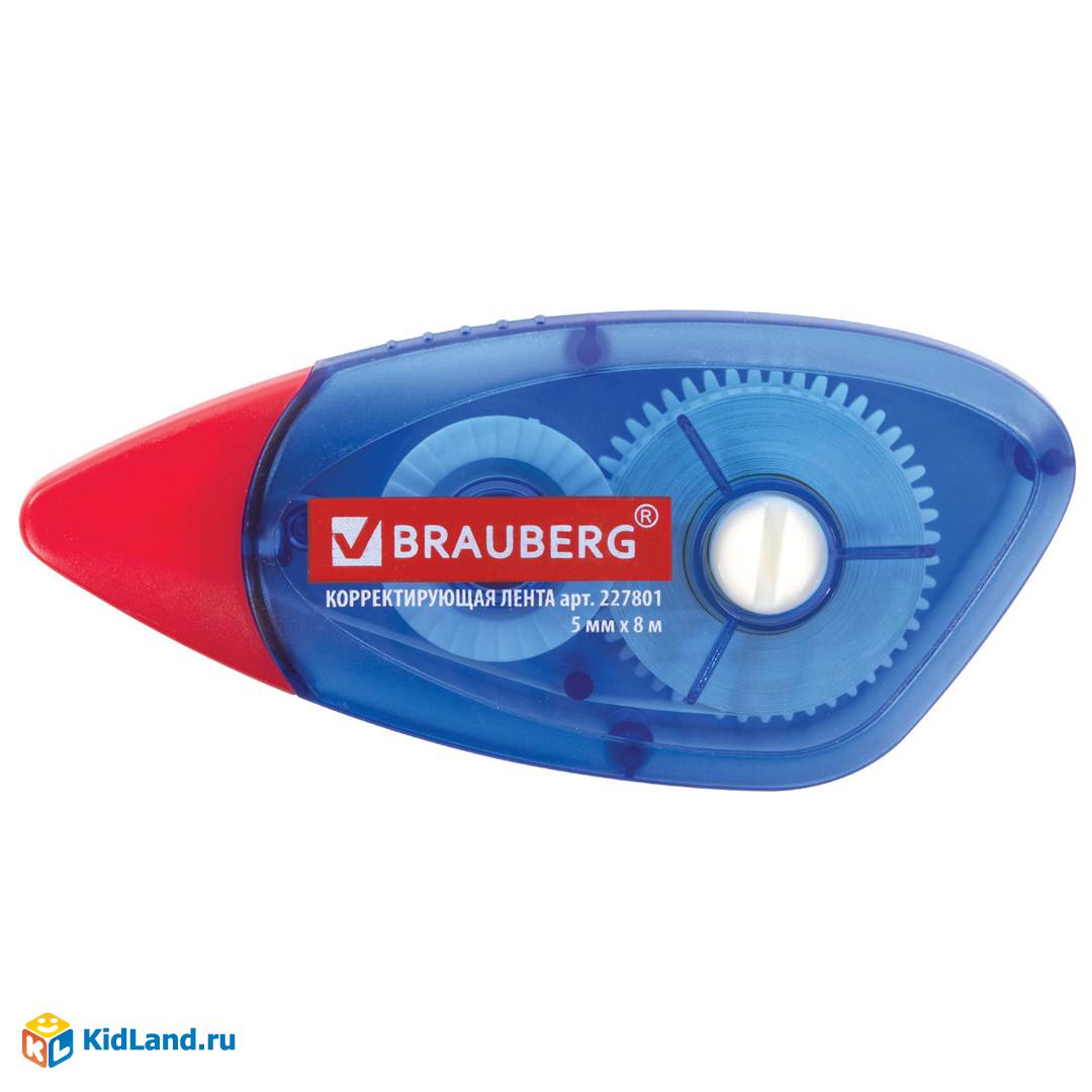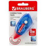 Корректирующая лента BRAUBERG 5 мм х 8 м, корпус синий, механизм перемотки, блистер, 227801
