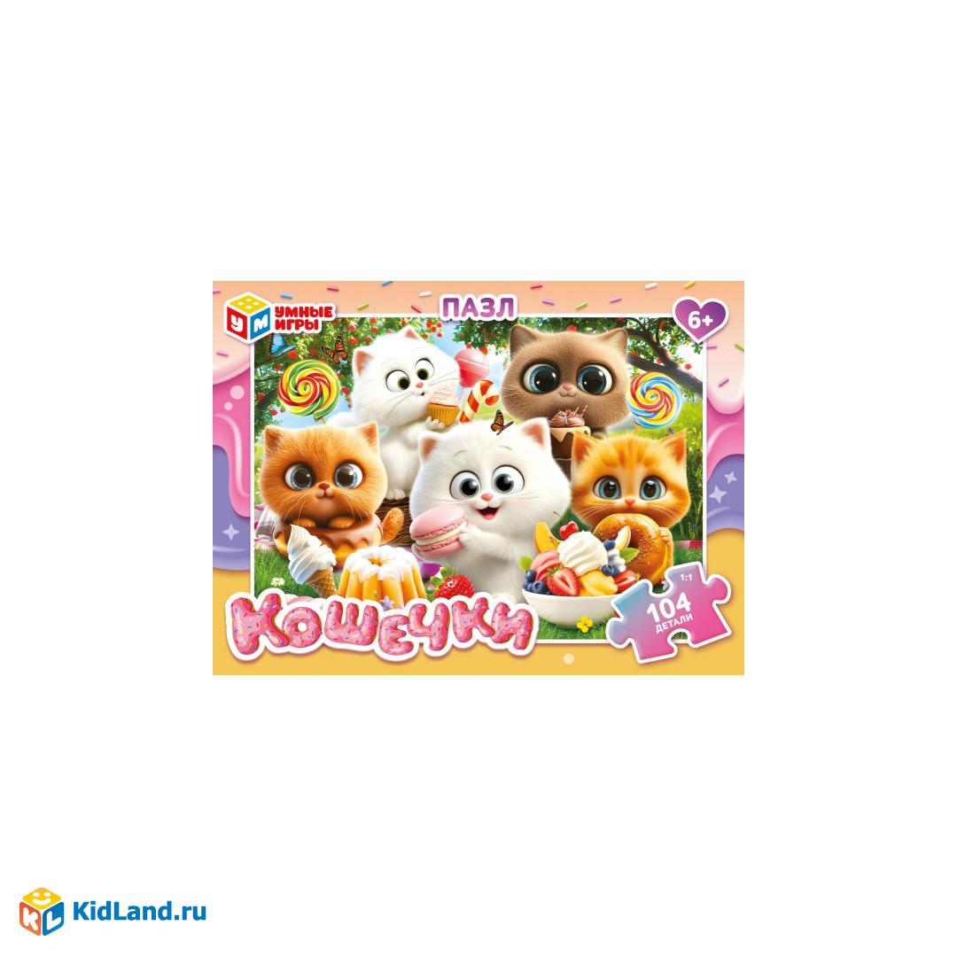 Котята с едой. Пазлы в коробке 104 детали. 190х141х35 мм. Умные игры