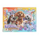 Котяты и щенки. Пазлы в коробке 54 детали. 90х65х25 мм. Умные игры в уп.32шт