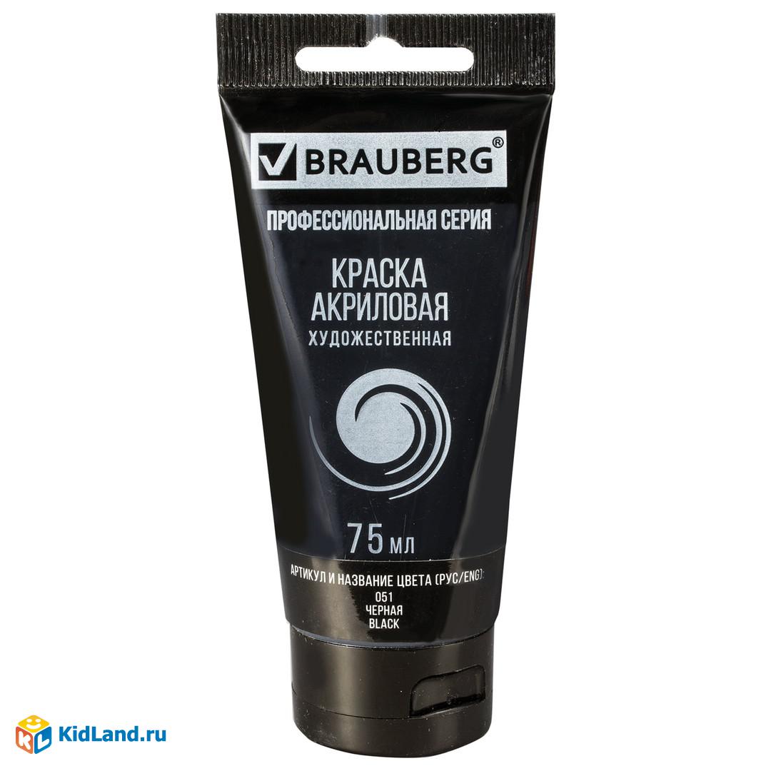 Краска акриловая художественная BRAUBERG ART CLASSIC, туба 75мл, ЧЕРНАЯ, 191116