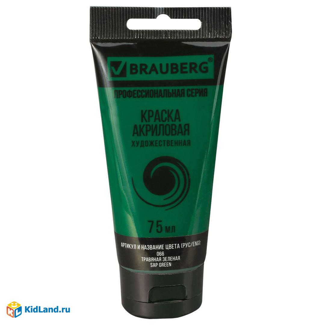 Краска акриловая художественная BRAUBERG ART CLASSIC, туба 75мл, ТРАВЯНАЯ ЗЕЛЕНАЯ, 191103
