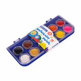 В наборе 12 насыщенных цветов, которые отлично смешиваются, позволяя создавать множество оттенков. Краски легко наносятся, образуя интенсивное яркое покрытие даже при нанесении в один слой. Обеспечивают однородное окрашивание, быстро высыхают и не портятся со временем. Краски безопасны для детей, нетоксичны. Выпускаются в пластиковом пенале с европодвесом, прозрачной крышкой, круглой формой кювет и отделением для кисточки. Съемную пластиковую крышку можно использовать в качестве палитры для смешивания красок.