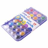 В наборе 28 насыщенных цветов, которые отлично смешиваются, позволяя создавать множество оттенков. Краски легко наносятся, образуя интенсивное яркое покрытие даже при нанесении в один слой. Обеспечивают однородное окрашивание, быстро высыхают и не портятся со временем. Краски безопасны для детей, нетоксичны. Выпускаются в пластиковом пенале с европодвесом, прозрачной крышкой, круглой формой кювет и отделением для кисточки. Съемную пластиковую крышку можно использовать в качестве палитры для смешивания красок.