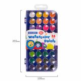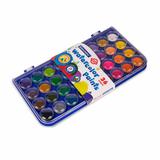 В наборе 36 насыщенных цветов, которые отлично смешиваются, позволяя создавать множество оттенков. Краски легко наносятся, образуя интенсивное яркое покрытие даже при нанесении в один слой. Обеспечивают однородное окрашивание, быстро высыхают и не портятся со временем. Краски безопасны для детей, нетоксичны. Выпускаются в пластиковом пенале с европодвесом, прозрачной крышкой, круглой формой кювет и отделением для кисточки. Съемную пластиковую крышку можно использовать в качестве палитры для смешивания красок.