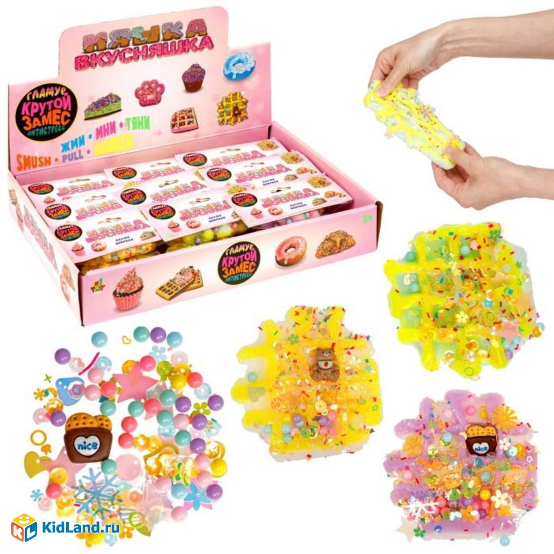 «Няшка-вкусняшка» из серии Крутой замес «Гламур» от 1TOY – это очаровательные и яркие игрушки-жмяки, украшенные разнообразными присыпками, шариками и бусинами. Все элементы упакованы в прочный zip-пакетик, который позволяет легко собрать и хранить присыпки вместе со жмякой до следующей игры. На хедере красуется очаровательный розовый колокольчик, который можно снять и использовать как стильный аксессуар для рюкзака, сумочки или ключей. Размер 8,5*8,5 см. Игрушка представлена в ассортименте.