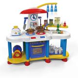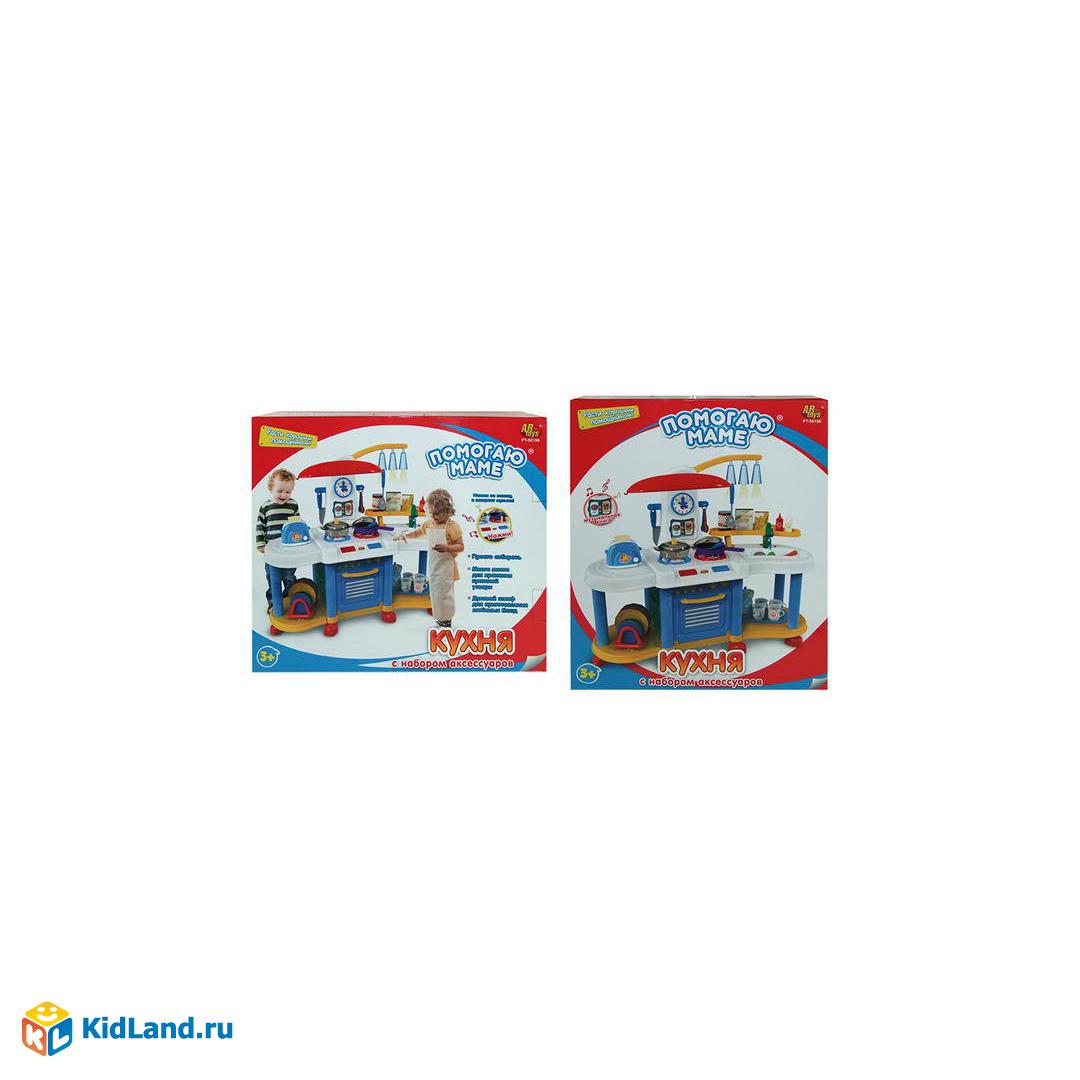 Замечательная детская игрушечная кухня из серии «Помогаю маме» от ABToys — это многофункциональная игрушка, которая очень понравится маленьким хозяйкам. Мамины помощницы смогут сполна ощутить удовольствие от процесса готовки, взаимодействуя с кухонной утварью и слушая реалистичные звуковые эффекты, которые кухня издает при игре с ней. Кнопка над мойкой позволяет пустить в кухне настоящую журчащую воду. Кроме того, что слышатся кипящие и шкварчащие звуки, маленького повара также будет сопровождать приятная музыка. Светильники на кухне будут гореть и переливаться разными цветами. Кроме аксессуаров для готовки и «еды» (тарелки, ложки, чашки и т. д.) в набор входят игрушечные овощи, фрукты, напитки, яйца, кетчуп и многое другое.