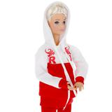 Будущая мама София одета в стильный красно-белый спортивный костюм. Одежду легко снять и надеть. С такой модной куклой девочке будет интересно и весело играть: благодаря тому, что руки и ноги куклы подвижны, им можно придать любое положение. У Софии длинные красивые волосы, которые собраны в замысловатый хвост. При желании Хозяйка куклы сможет расплести волосы Софии и изменять ей причёски на свой вкус. Детально проработанный дизайн игрушки вдохновит девочку на новые игровые сюжеты.