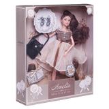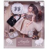Кукла ABtoys "Amelia. Современный шик"в платье с плиссированной юбкой, черная сумка, темные волосы 30см