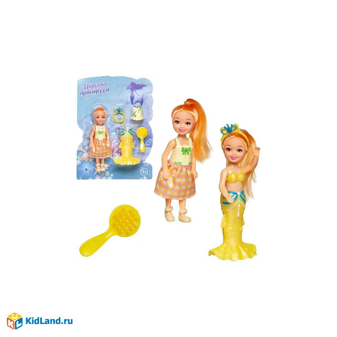 Кукла Abtoys Морская принцесса 14 см в желтом платье трансформируется в русалочку с игровыми предметами