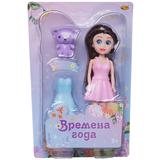 Кукла ABtoys Времена года 17 см в розовом платье с медвежонком и вторым платьем