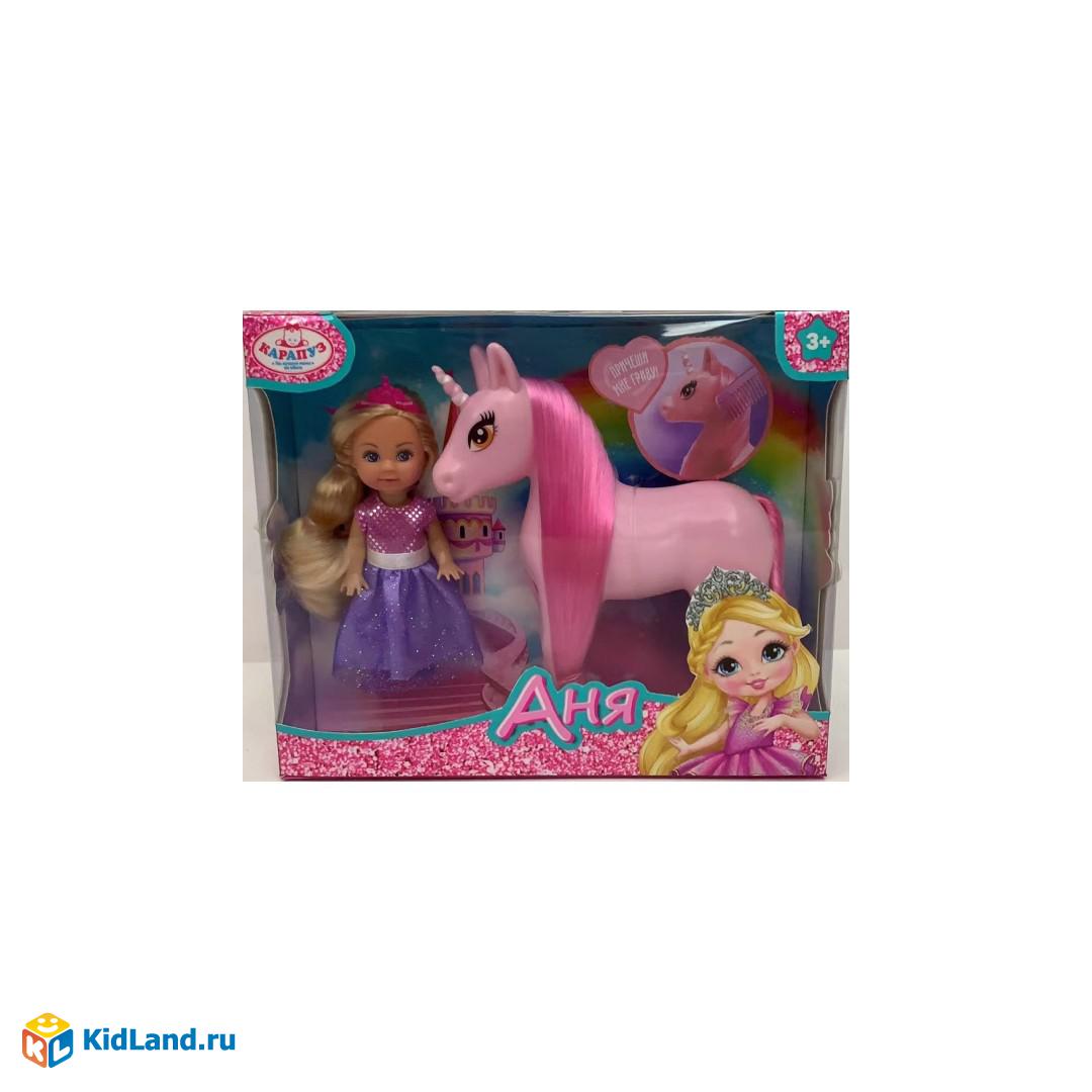 Кукла Аня 12 см с единорогом, кор КАРАПУЗ