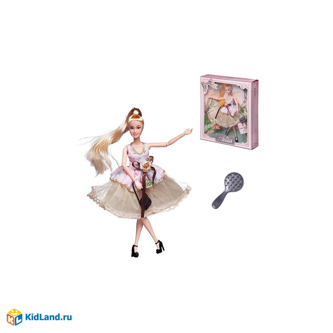 Кукла Junfa Atinil Весенняя свежесть в платье (розовый с цветами верх и воздушная юбка) с сумочкой и расческой, 28см