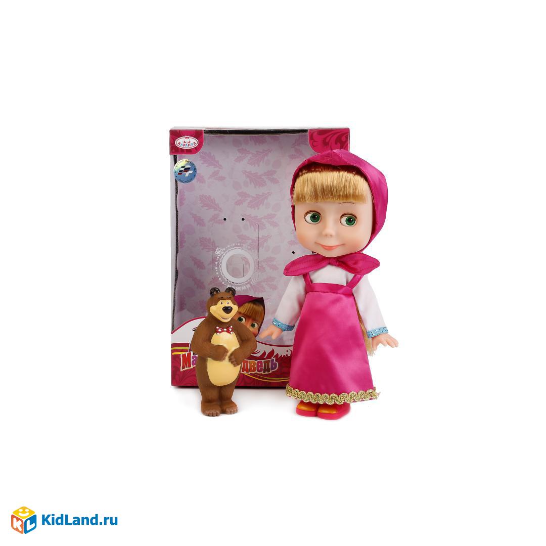 Кукла Маша из популярного мультсериала станет лучшей подругой ребёнка. В комплект входит игрушка Мишки ростом 10 см. У Маши двигаются руки и ноги, открываются и закрываются глазки, можно расчёсывать её волосы. Кукла озвучена: нажав Маше на живот, вы услышите 100 фраз, стишки и 4 песенки из мультфильма. Попутно ребёнок выучит алфавит и цвета. Игра с куклой разовьёт у детей речь, фантазию и социальные навыки, воспитает чувство ответственности и заботы. Кукла работает на батарейках (входят в комплект). Рекомендуется детям от 3 лет.