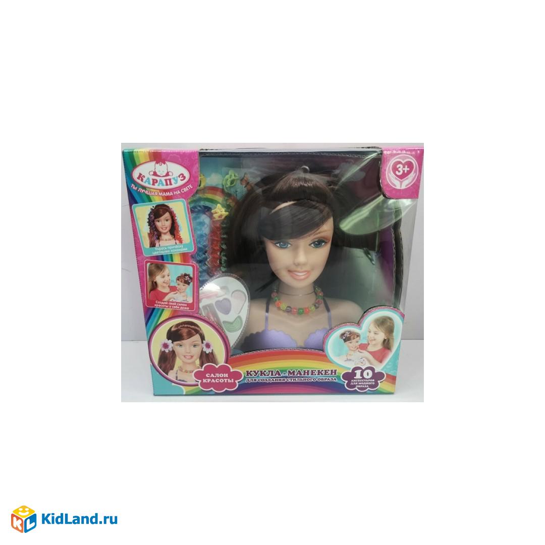 Кукла-манекен 21см,шатенка, с 10 акс.для волос и косметикой, в кор Карапуз