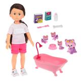 В комплекте: куколка, ванна, 4 питомца и 6 аксессуаров для питомцев.
