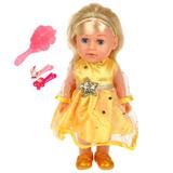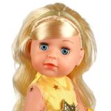 Милая кукла с детально проработанным личиком обязательно понравится малышке. Анечка одета в нарядное платье жёлтого цвета с декором в виде золотистых звёзд. На голове у куколки - красивая ленточка. Одежда легко снимается и надевается. У куклы длинные красивые волосы. Хозяйка куколки легко сможет сделать Алёнке причёску по своему желанию, для этого в наборе имеется расчёска и заколки.