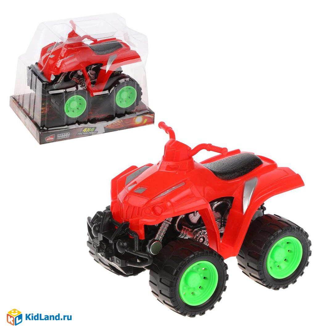 Машина-квадроцикл выполнена в яркой расцветке, она обязательно понравится ребёнку. В машинке предусмотрен фрикционный механизм движения: стоит разогнать игрушку об асфальт или пол, как она шустро понесётся вперёд.