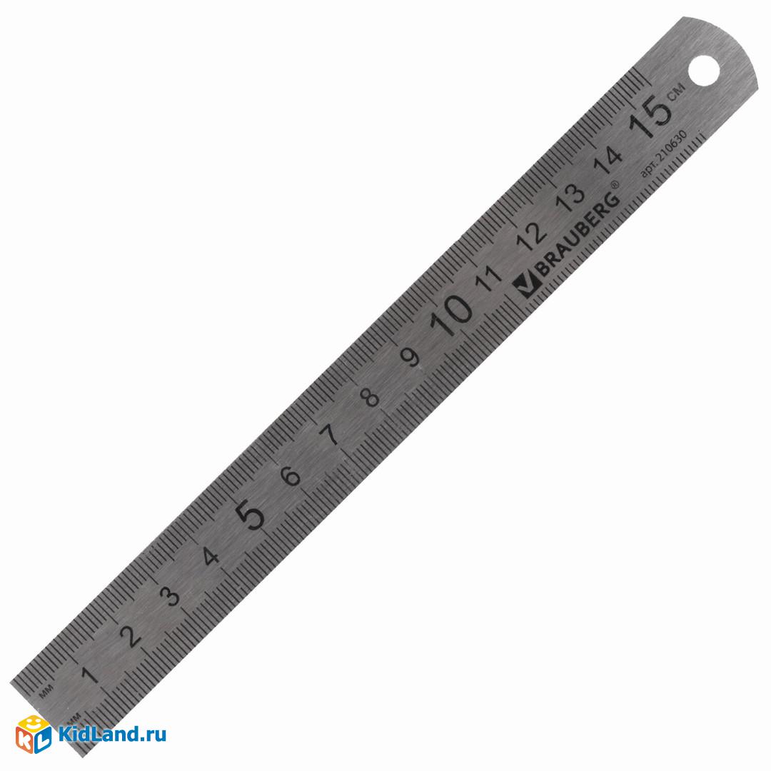 Линейка металлическая 15 см, BRAUBERG, европодвес, 210630