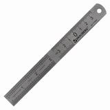 Линейка изготовлена из высококачественной пружинистой стали. Имеет безопасные закруглённые углы и четкую контрастную миллиметровую шкалу. Длина шкалы составляет 15 см. Упакована в ПВХ чехол с подвесом.