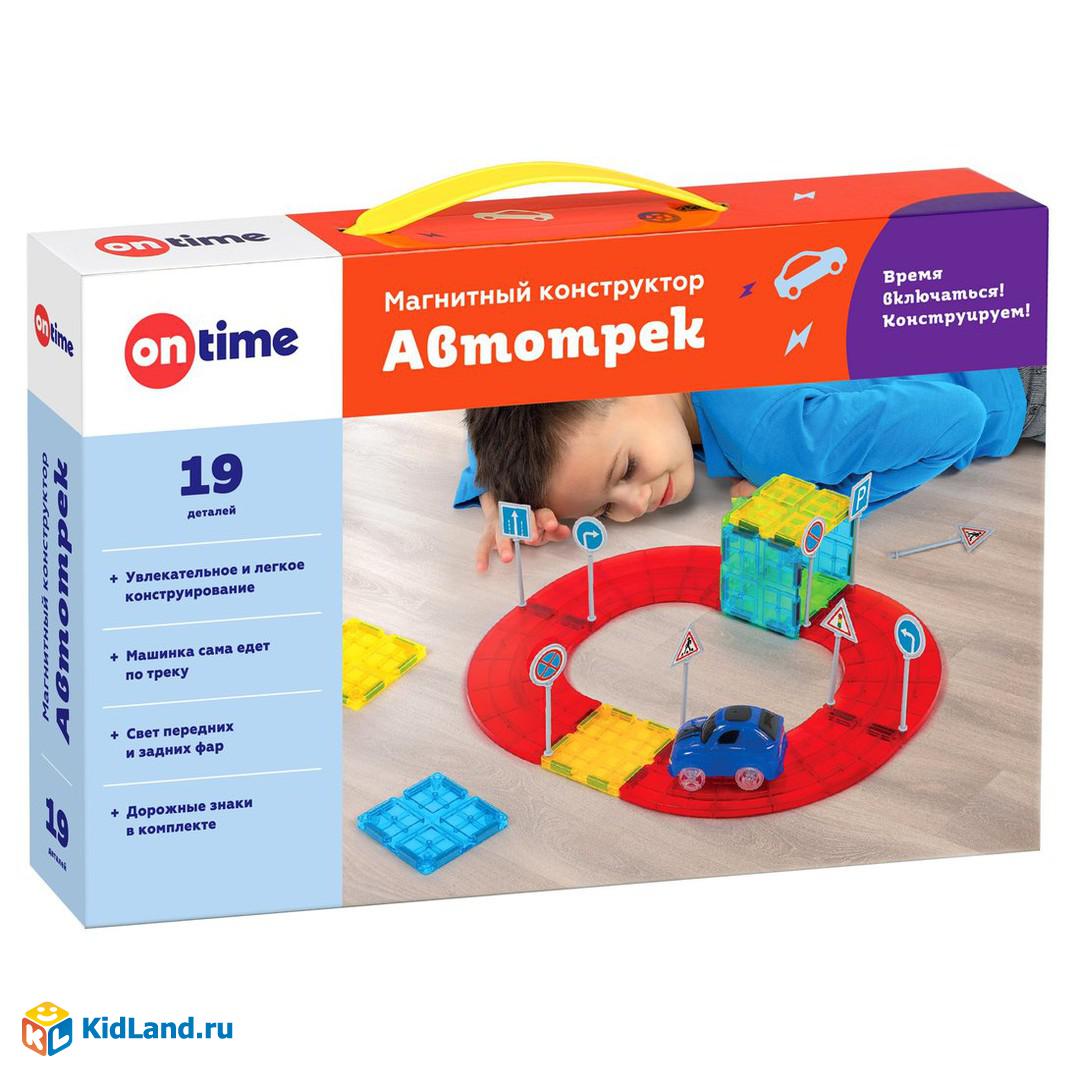 Магнитный конструктор от ТМ On Time превратит обычную игру в машинки в увлекательную логическую задачу для развития пространственного мышления! В комплекте – 19 деталей, из которых ребёнок сможет построить захватывающий автотрек. Элементы конструктора нужно соединить между собой так, чтобы дорога замкнулась как настоящая гоночная трасса. Машинка, которая также входит в состав игрового набора, будет ездить по кругу с включенными передними и задними фарами. Ребёнок будет с большим удовольствием наблюдать за её движением!