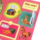Малыш с удовольствием будет рассматривать яркие страницы с изображением милых животных, выполнять увлекательные задания и открывать секретные окошки, чтобы найти правильный ответ. Книжка сделана из плотного картона, поэтому мамы могут не опасаться, что ребёнок порвёт странички.