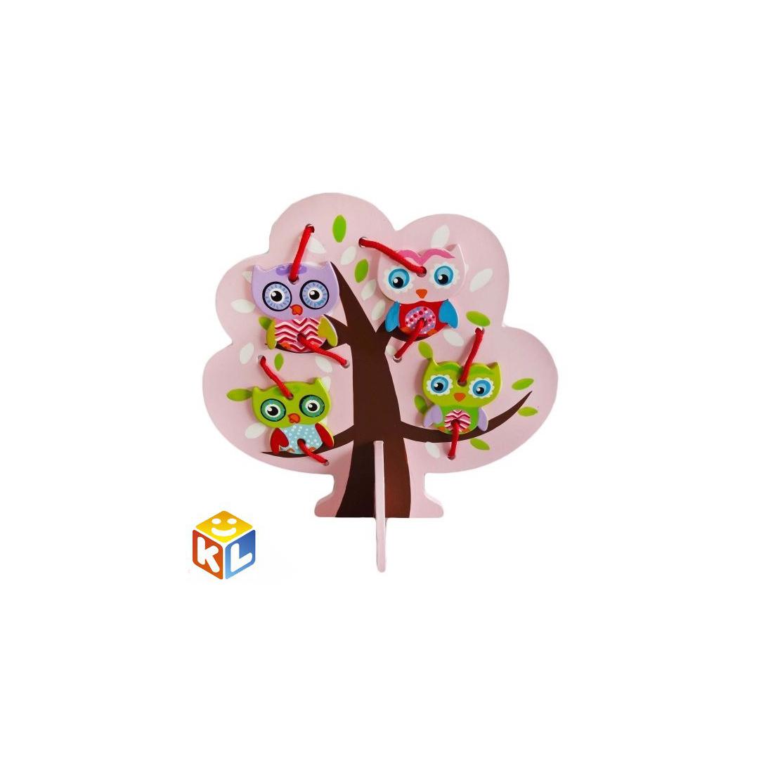 Деревянная шнуровка MAPACHA "Дерево с совятами" - большое дерево, на котором обитают птички с ярким окрасом.