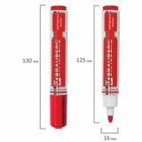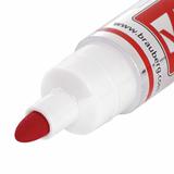 Маркер для доски красного цвета обладает круглым пластиковым корпусом диаметром 19 мм. Наконечник круглой формы обеспечивает толщину линии письма 5 мм, что позволяет писать крупным шрифтом, который будет хорошо виден. Благодаря спиртовой основе, чернила быстро высыхают и не оставляют разводов, легко стираются сухой губкой. Изделие не перезаправляется. Цвет колпачка соответствует цвету чернил.