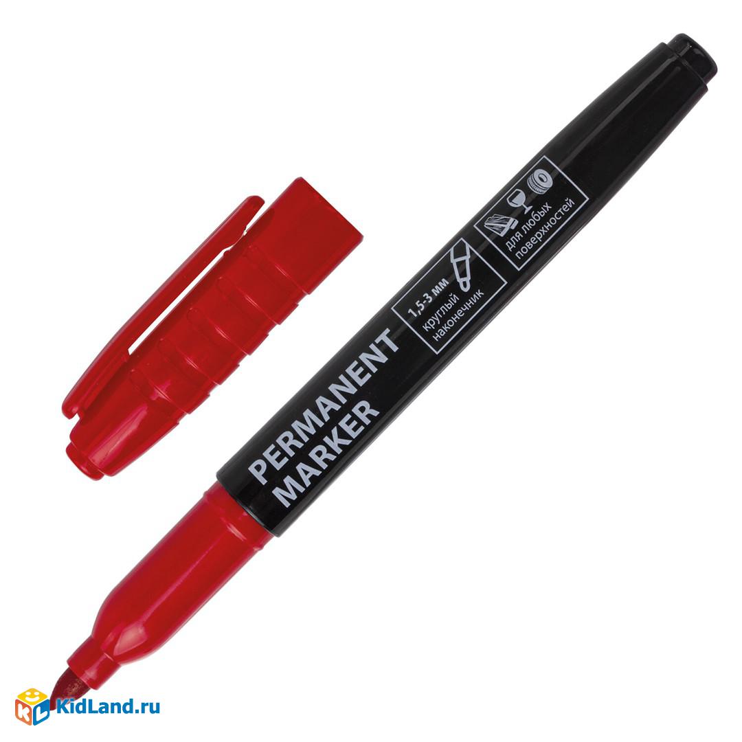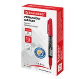 Маркер перманентный (нестираемый) BRAUBERG, КРАСНЫЙ, круглый наконечник, 1,5-3мм, 151631