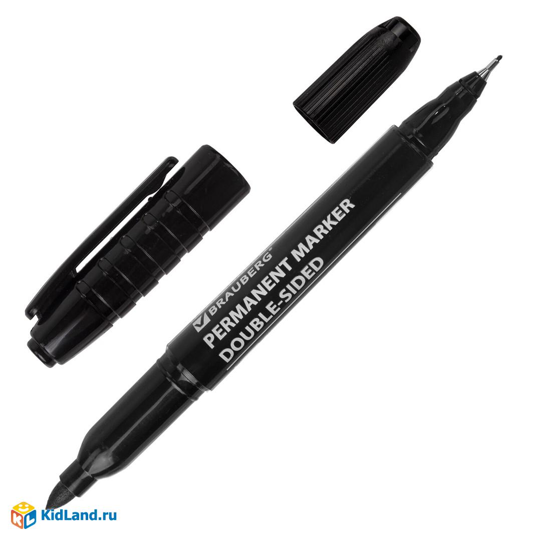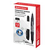 Маркер перманентный (нестираемый) двусторонний BRAUBERG "Double", ЧЕРНЫЙ, наконечники 0,83 мм, 1516
