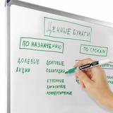 Маркер для доски зеленого цвета обладает круглым пластиковым корпусом диаметром 12 мм. Наконечник круглой формы обеспечивает толщину линии письма 4 мм, что позволяет писать крупным шрифтом, который будет хорошо виден. Благодаря спиртовой основе чернила быстро высыхают и не оставляют разводов, легко стираются сухой губкой. Изделие не перезаправляется. Цвет колпачка соответствует цвету чернил.