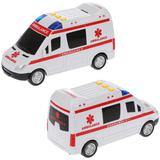 Игрушечная машинка с инерционным механизмом движения «Скорая помощь» из серии «Городские службы». При нажатии кнопочек на крыше активируются 3 варианта звуковых сигналов (сирены) и подсветка мигалок.