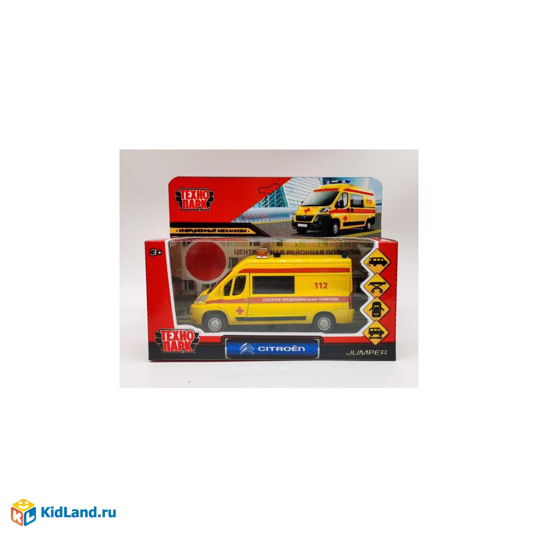 Машина металл CITROEN JUMPER РЕАНИМАЦИЯ 14 см, двер, баг, инер, желтая, кор. Технопарк