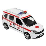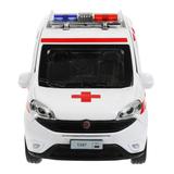 Машина металл FIAT DOBLO СКОРАЯ 12 см, двери, инерц, белый, кор. Технопарк