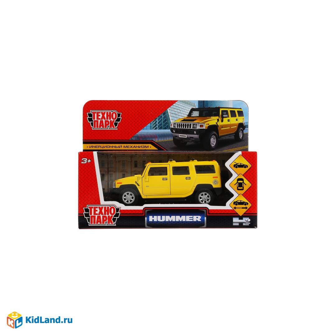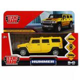Машина металл HUMMER H2 длина 12 см, двери, багаж, инерц, желтый, кор. Технопарк