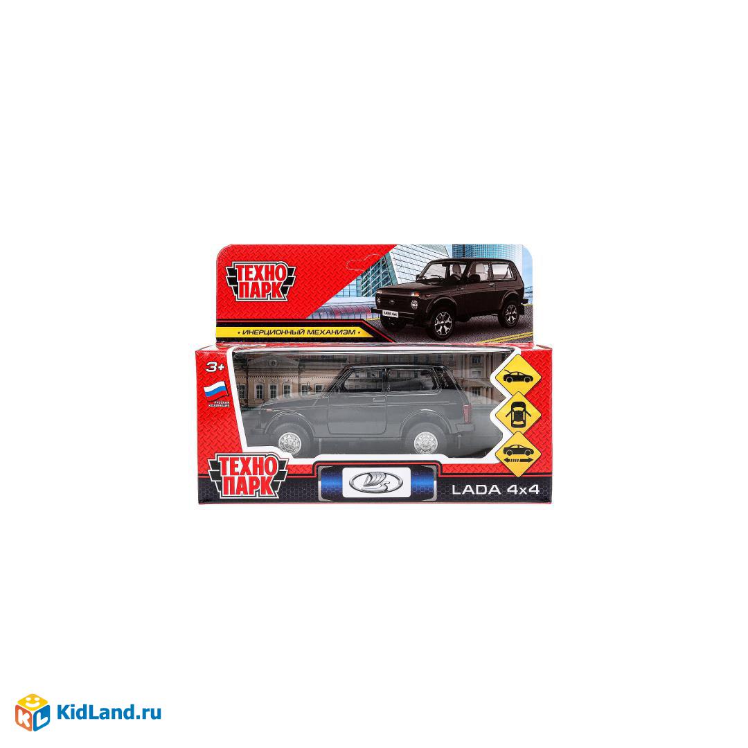 Машина металл LADA 4x4 длина 12 см, двери, багаж, инерц, черный, кор. Технопарк