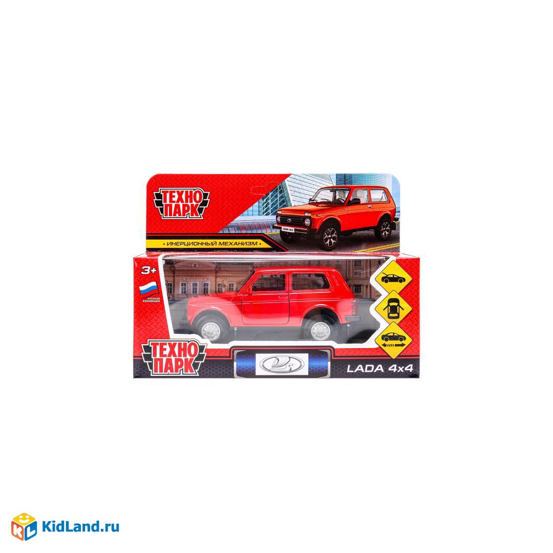 Машина металл LADA 4x4 длина 12 см, двери, багаж, инерц, красный, кор. Технопарк