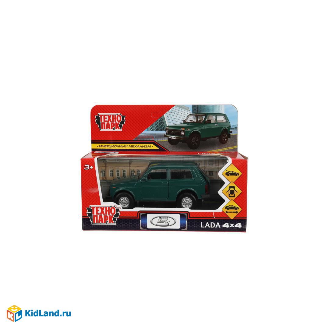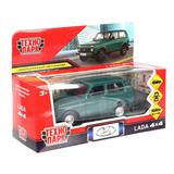 Машина металл LADA 4x4 длина 12 см, двери, багаж, инерц, зеленый, кор. Технопарк