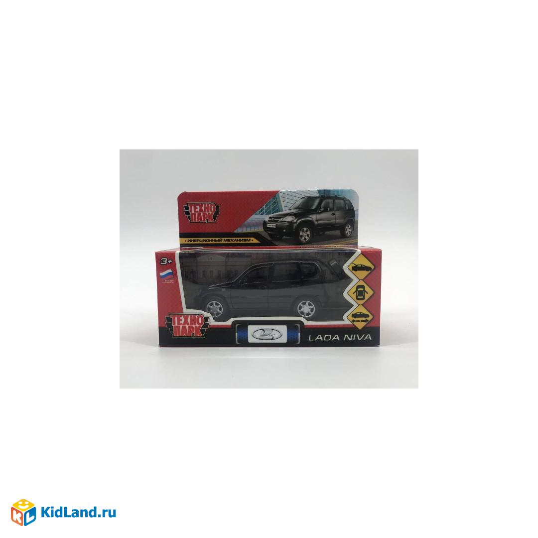 Машина металл LADA NIVA длина 12 см, двери, багаж, инерц, черный, кор. Технопарк