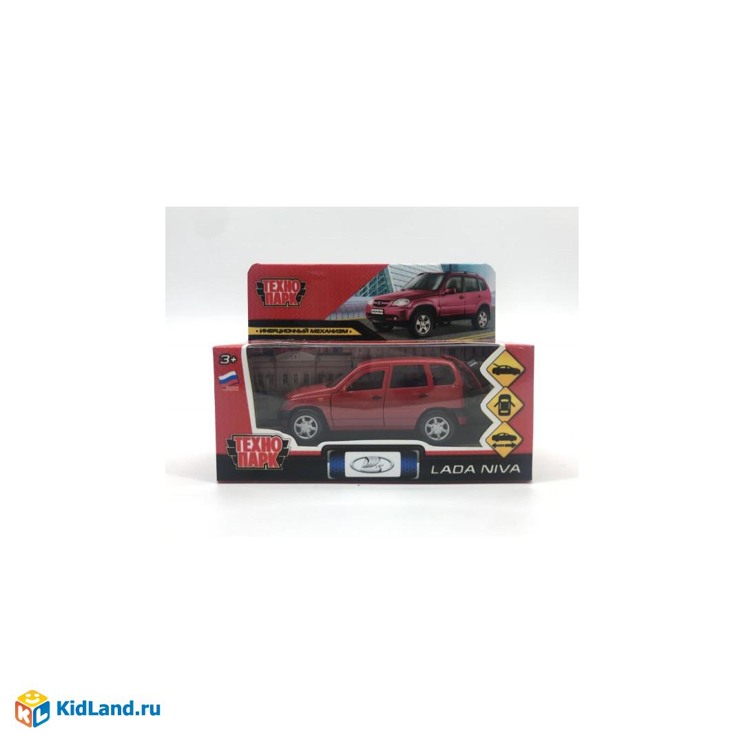 Машина металл LADA NIVA длина 12 см, двери, багаж, инерц, красный, кор. Технопарк