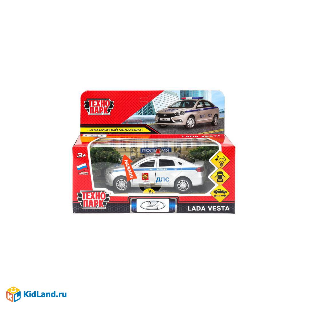 Машина металл свет-звук LADA vesta ПОЛИЦИЯ 11,5 см, двер, багаж, кор. Технопарк